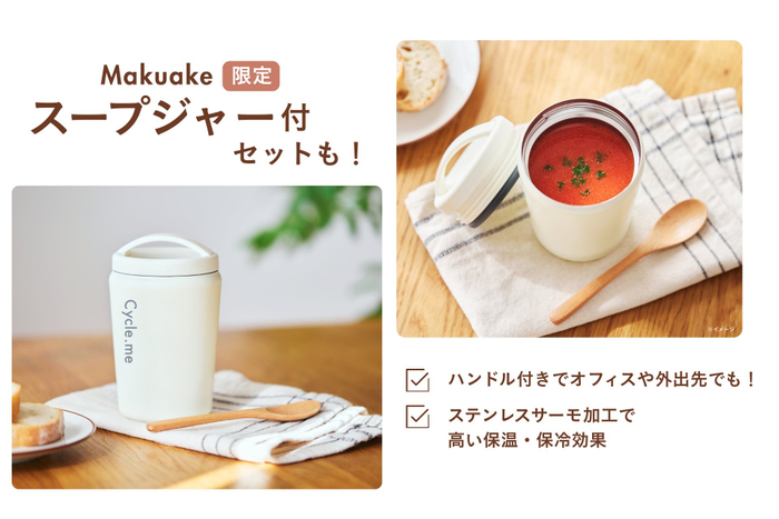 サイクルミーロゴ入り「限定オリジナルスープジャー」付きのリターンもお見逃しなく。