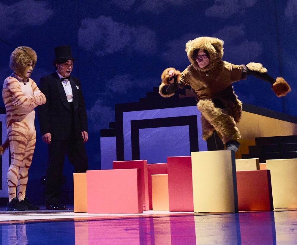「ぐらぐらネコパンチロード」では、地上2mの綱を渡りながら吊るされた魚をネコパンチで叩き落とす!