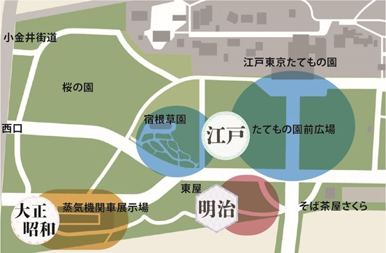 JR中央線「東小金井」からCoCoバス「小金井公園入口」・「たてもの園入口」下車