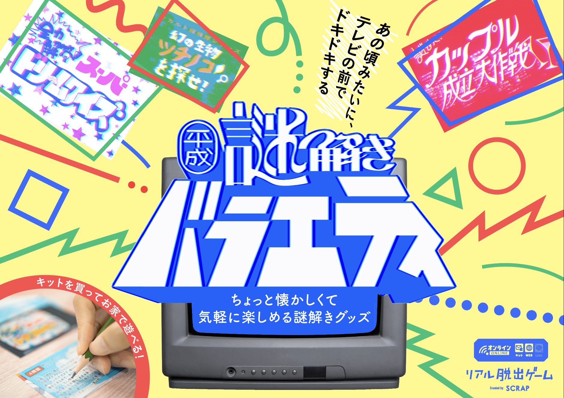 全世界で累計1,490万人以上を動員しているリアル脱出ゲームを企画制作する株式会社SCRAP(本社:東京都渋谷区、代表:加藤隆生)は、自宅で遊べる新作リアル脱出ゲーム『平成謎解きバラエティ』の発売を決定いたしました。