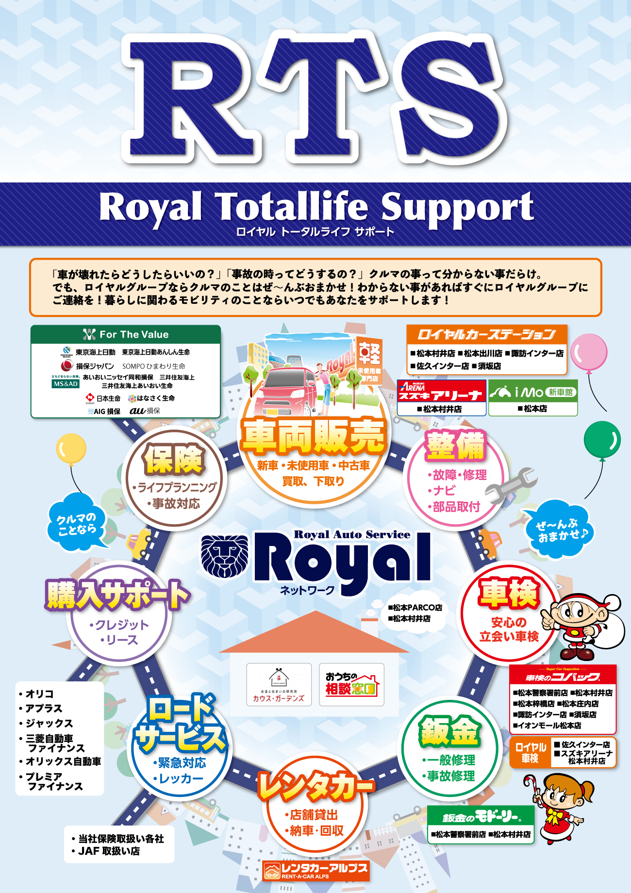 その他にも、保険専門部門・レンタカー部門・コールセンター部門などロイヤルではご購入後のアフターメンテナンスをトータルでサポートしております。