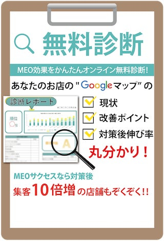 ※現在Googleビジネスプロフィールをご利用の店舗様は、お店の"Googleマップ”の現状と改善ポイントが分かる「無料診断」も実施しております。