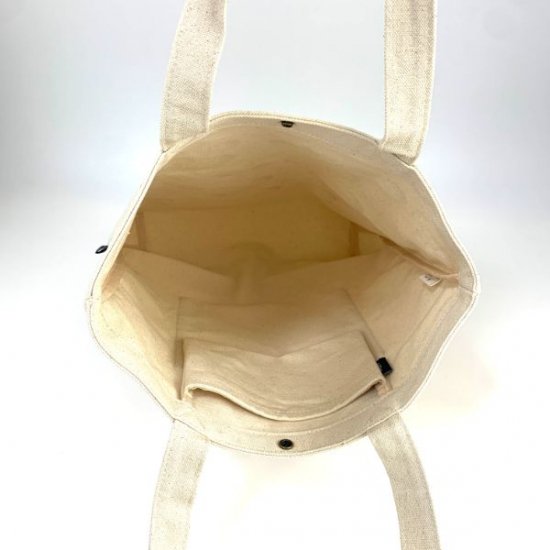 ナチュラルな帆布素材にミッフィーとまるちゃんのデザインがかわいさ添えている、トートバッグです。