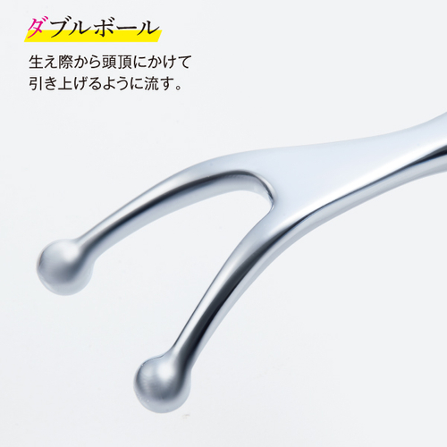 生え際から側頭部、頭頂部へつまみ上げるように引き上げるダブルボール。頭皮とつながっている顔の筋肉も意識しながら引き上げるように使用できます。