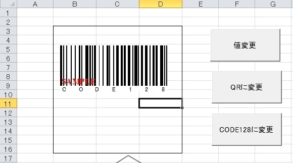 ExcelのVBAマクロでバーコードを生成するための最少コードは次の図の記述になります。