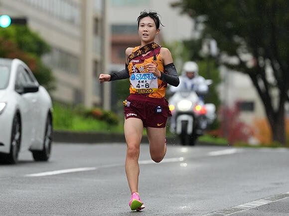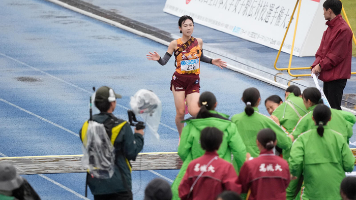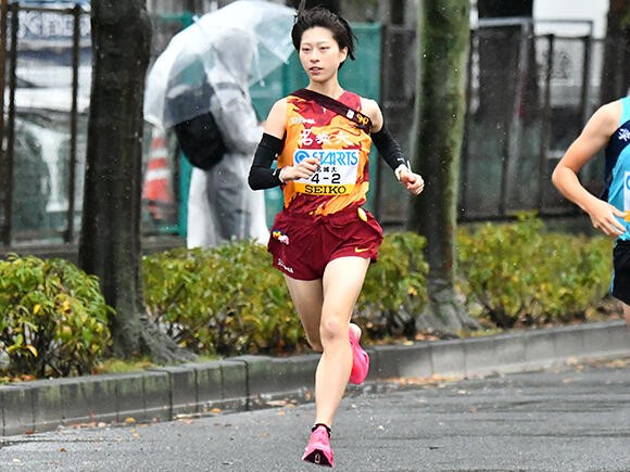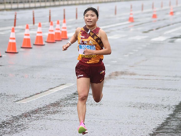 依然トップを走る城西大学との差は41秒となった。東北福祉大学・佐々木菜月選手(3年)が区間新(区間1位)の快走でチームを2位に上げ、3位には前回女王の立命館大学が続いた。