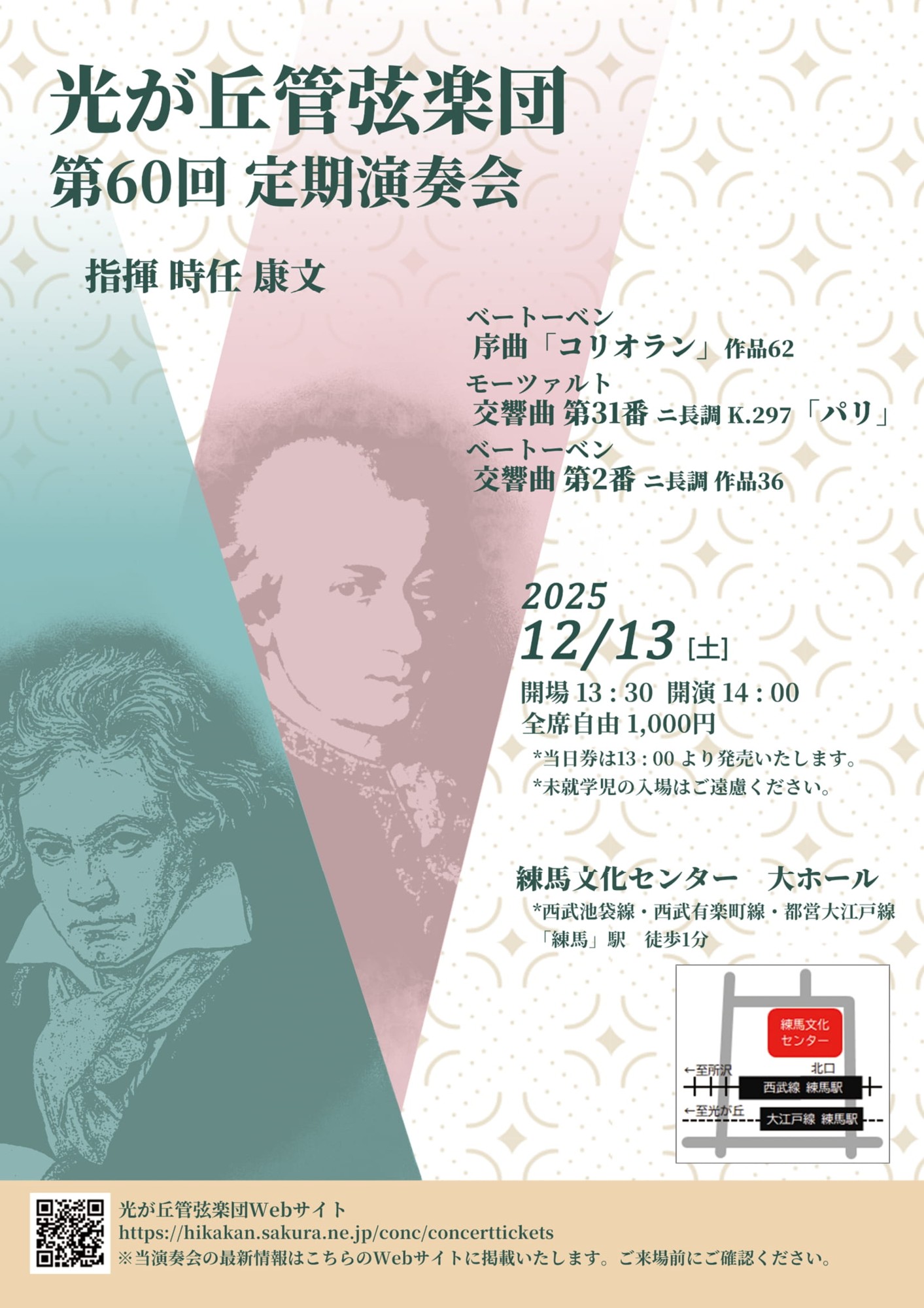 光が丘管弦楽団、30年の歴史で初の練馬文化センター公演を開催! 「情熱と躍動の古典」ベートーヴェン&モーツァルトに挑む記念すべき第60回 全席1,000円で発売中。
