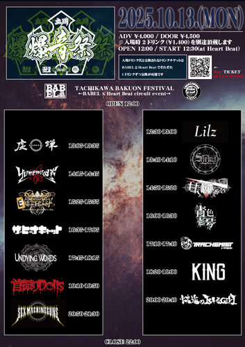 今年で2回目となる立川BABELと立川Live Bar HeartBeatの2会場によるメタル系サーキットイベント、立川爆音祭が2025年10月13日(月・祝)に開催されます。