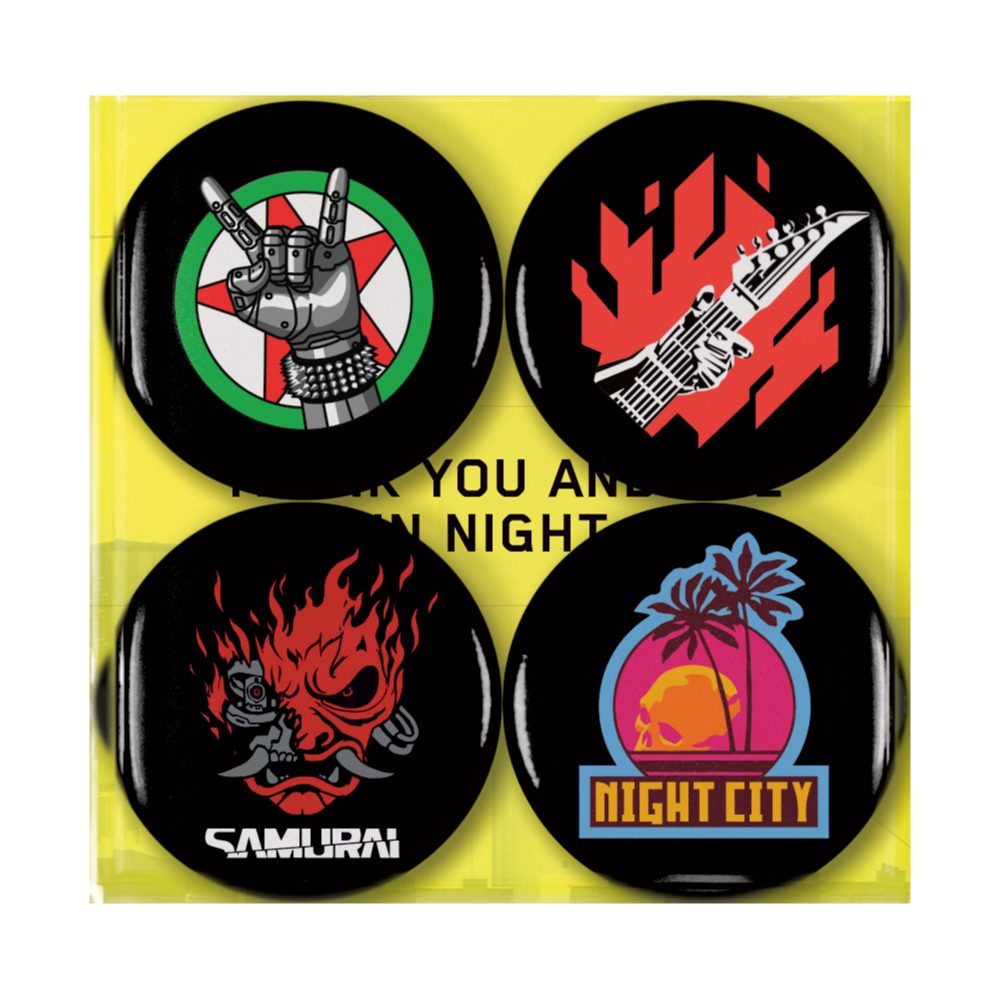 本作の舞台であるナイトシティの伝説的バンド「SAMURAI」のロゴをクローズアップしたセットは当店限定仕様!