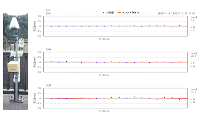 特に、shamen-netが持つ最高約1~2mmの変位を24時間365日遠隔で監視する高精度なGNSS計測解析技術と、NTNの災害時にも途切れない通信環境を融合することで、アクセス困難なダム施設の点検および平常時の維持管理の高度化・省人化に大きく貢献するダム管理DX手法の有効性を確立しました。