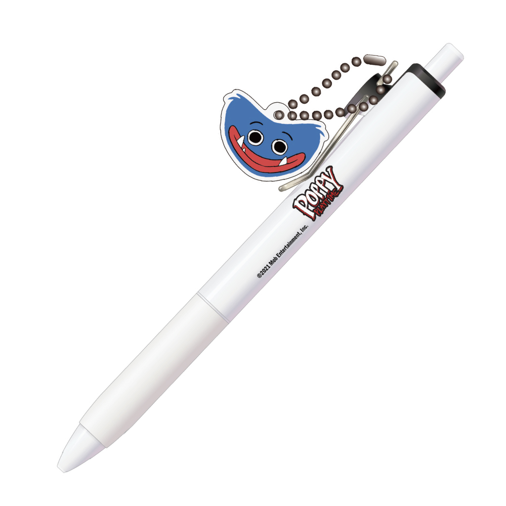 ちょっぴり不穏でかわいい「Huggy Wuggy」のアクリルチャームが付き。本体にはPoppy Playtimeのロゴがあしらわれています。ボールペンは、普段使いしやすい径0.5mmの三菱鉛筆のユニボール ワン(黒インク)です。