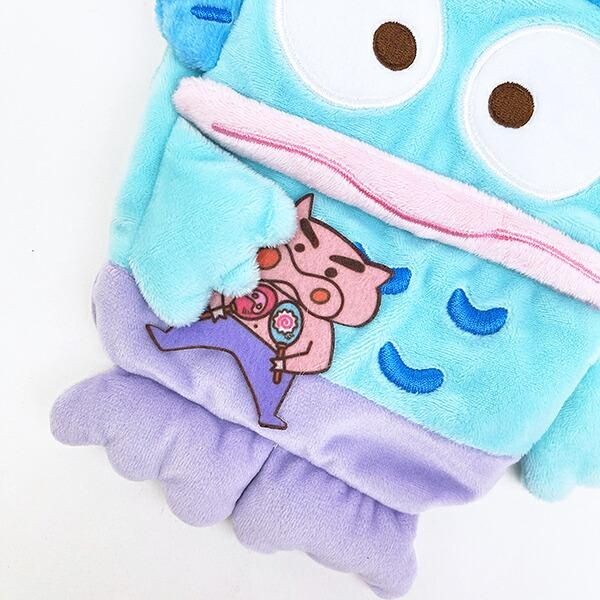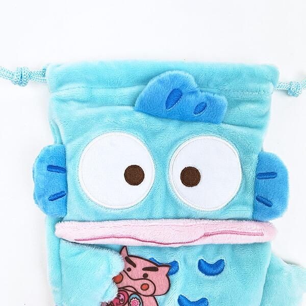 ほかにもサンリオとしんちゃんに登場するお馴染みのキャラクターたちが夢のコラボを果たしています。こちらは、サンリオ ハンギョドン × クレヨンしんちゃん ぶりぶりざえもんの ぬいぐるみ巾着です。