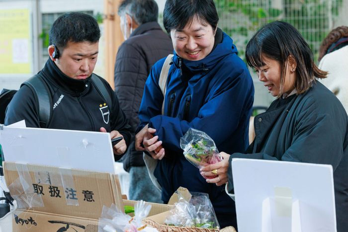 マーケットならではの来場者と事業者との距離感の近さから、会場のあちこちでコミュニケーションが生まれていました。商品を手に取る中で、事業者からその商品について詳しく聞いたり、実際に試してみたり。取り組みや商品に込められた思いについて直接話を聞くことで、エシカルに直に触れられる機会となっていました。