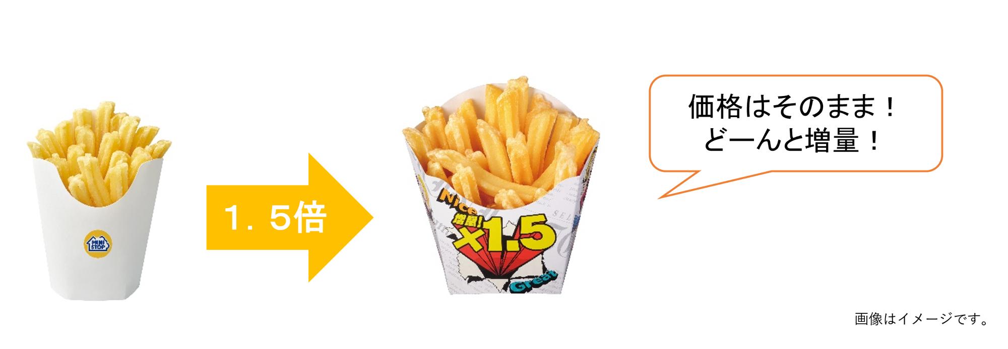 ミニストップは、人気商品「X(エックス)フライドポテト」の1.5倍増量セールを行います。
