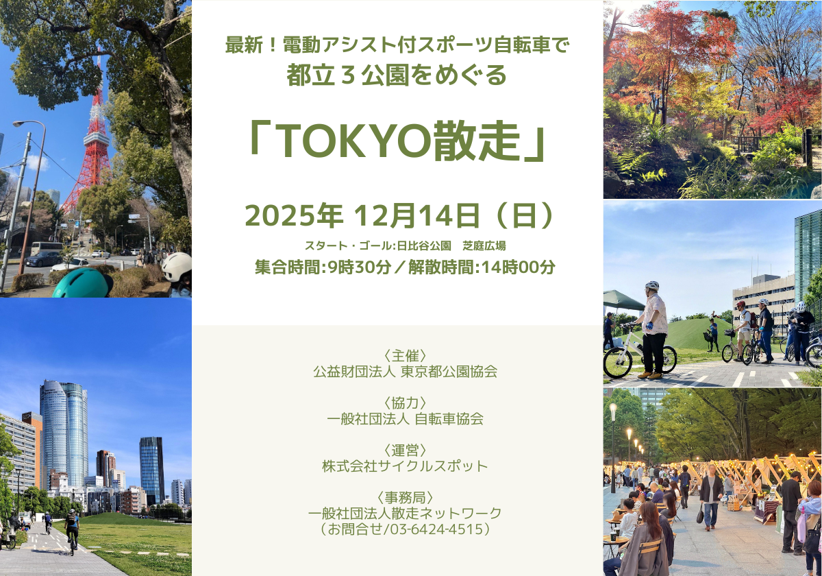 【12/14開催】最新!電動アシスト付きスポーツ自転車で都立3公園をめぐる「TOKYO散走」
