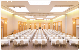 伊勢湾の朝焼けをイメージした色合いの絨毯で気品ある雰囲気を演出し、より上質で華やかな時間を提供いたします。さらに、デジタル音響機器を導入し、ハウリングが起きず、お互いの音声がつぶれることなく、常にクリアな音声で双方向コミュニケーションを実現します。