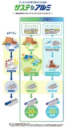 サンホイルは、2025年10月から2026年9月の期間に、アルミニウム原料の「30%以上」をグリーンアルミとリサイクルアルミに置き換えることを目標とし、順次使用量を拡大する計画です。