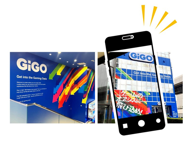 全国のGiGOグループのお店にある「GiGOロゴ」「Get into the Gaming Oasis」「ゲームのオアシスに飛び込め」を撮影して #39ギーゴ でポストしよう!