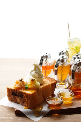 ために配合を調整し、外はサクッと中はふわふわで蜂蜜との相性は抜群。トーストの上には、蜂蜜の甘味を引き立てるミルク感強めのソフトクリームや、