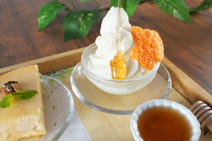 カフェのメニューはすべて、8種類の蜂蜜がかけ放題!