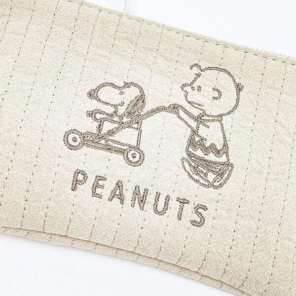 ふんわりとした柔らかな素材が素敵な、スヌーピーのパスポーチ。キルト刺繍でデザインされたスヌーピーとチャーリーブラウンの姿に、和みます。