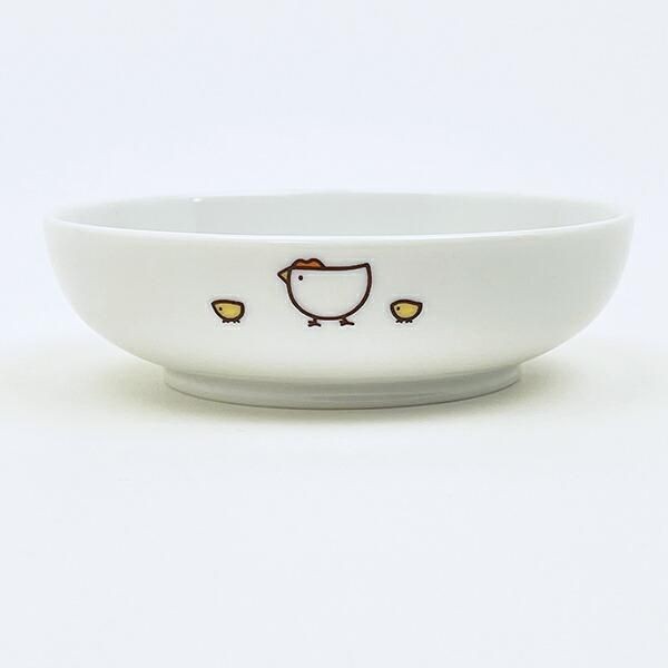 こっこ親子がデザインされたの食器はほかにも違うお皿の形のラインナップもございますので、合わせてお勧めです。こちらは、汁椀です。樹脂の軽くて頑丈な素材です。暖色系の色合いで食卓にやさしい雰囲気を与えてくれそうです。サイズ:5.5cm×10.2cm×10.2cm 素材:PET、ABS樹脂