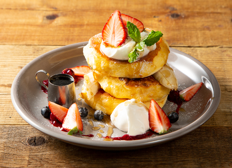 高野さんの卵を使ったスフレパンケーキ/フレッシュベリー(3枚) 1,490円(税込1,639円)