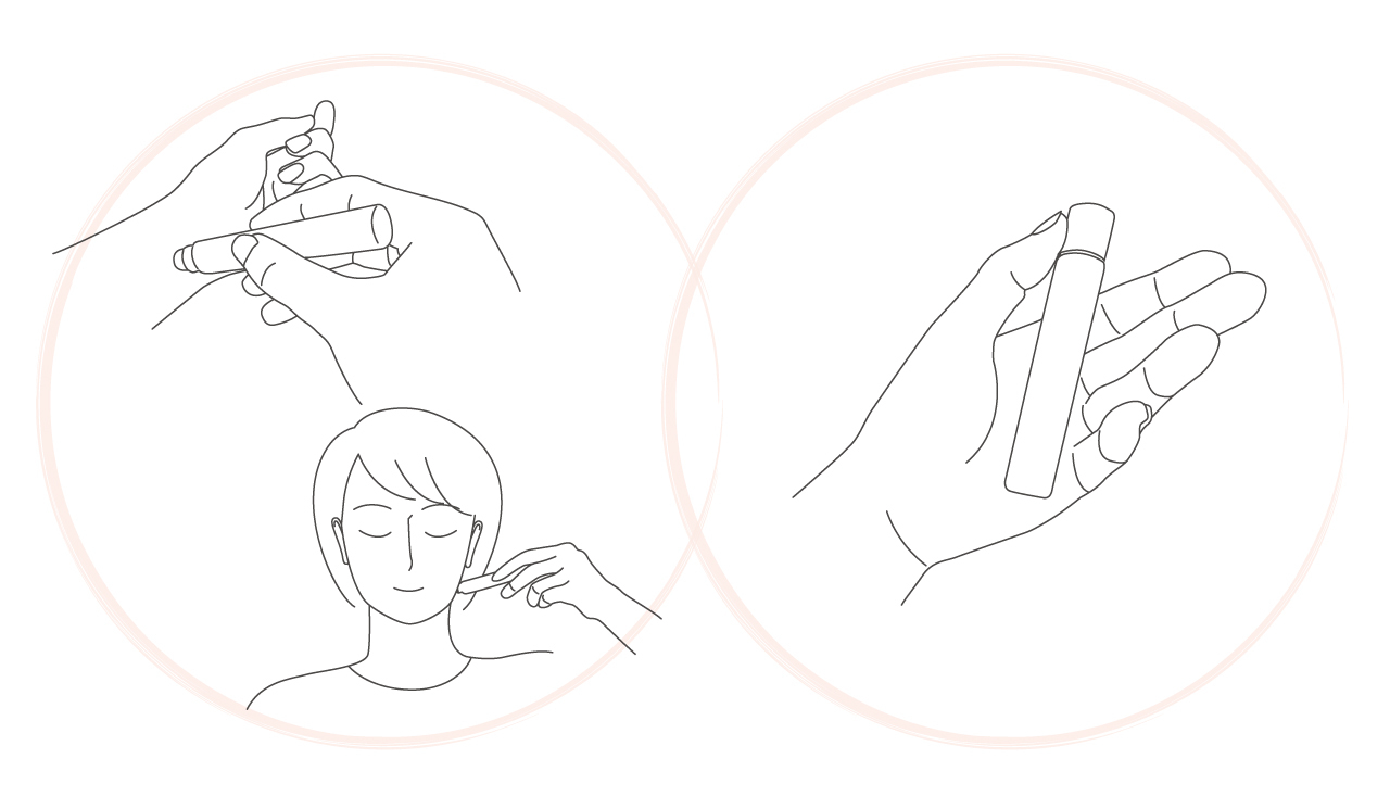 液体を肌に直接塗りやすいロールが付いた、携帯にも便利な手のひらサイズの容器です。