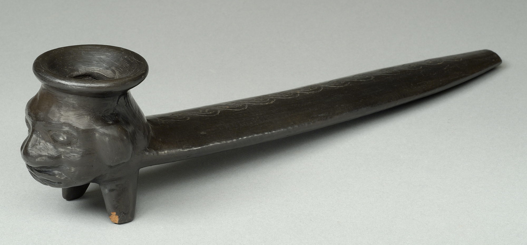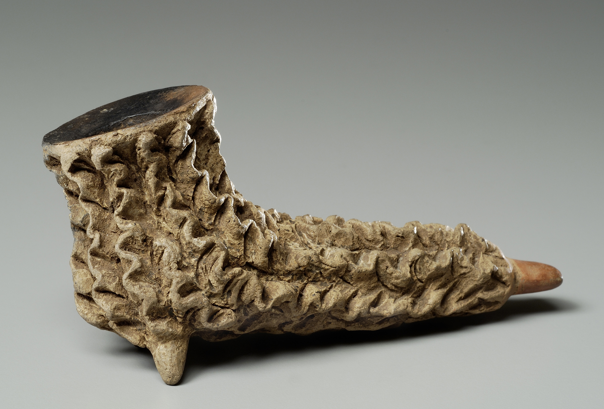 現代のパイプには、儀礼に用いられるものの他、民芸品やお土産品としてつくられているものもあります。その中には、古代文明の遺跡から出土した土偶を模したようなものがみられます。そうした装飾には、現代を生きる人々が抱く古代のイメージが反映されていると考えられます。古代から用いられてきたパイプには、現代において、古代の世界観を表現する道具としての役割も見出せます。