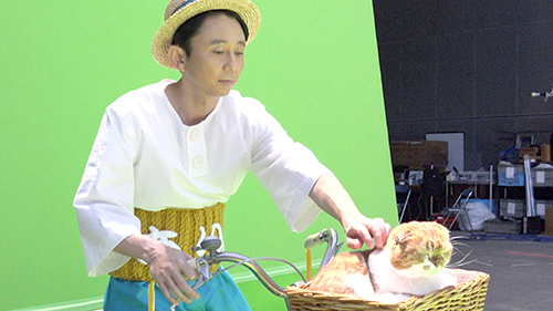 自転車に乗るシーンでは、思ったよりもゆっくり漕がなければならなかったそうで、苦戦したという有吉さんでしたが、カゴに乗ったぽちゃ猫(ありきち)との相性はばっちり。「おとなしくて云うことをきいてくれるこんなに可愛い猫がいるんだ!」と驚きながら、時折、様子をうかがってなでたりする優しい姿も見受けられました。