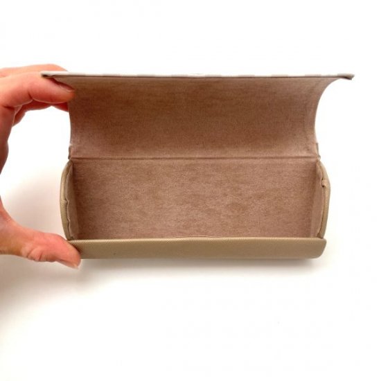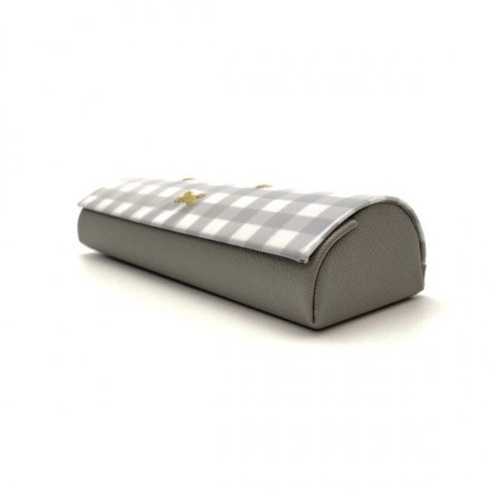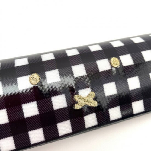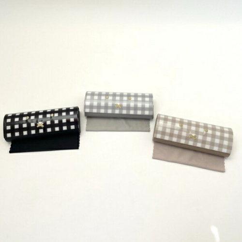 ベージュ×ホワイトのギンガムがシックな、メガネケースです。