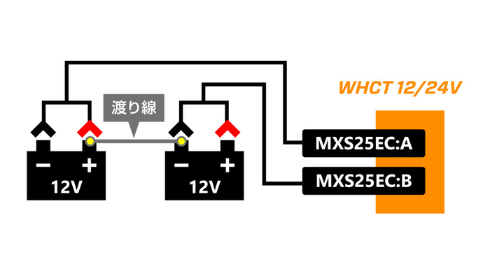 4. バッテリーを車載のまま充電可能。24Vバッテリーは渡り線を外す必要はありません。