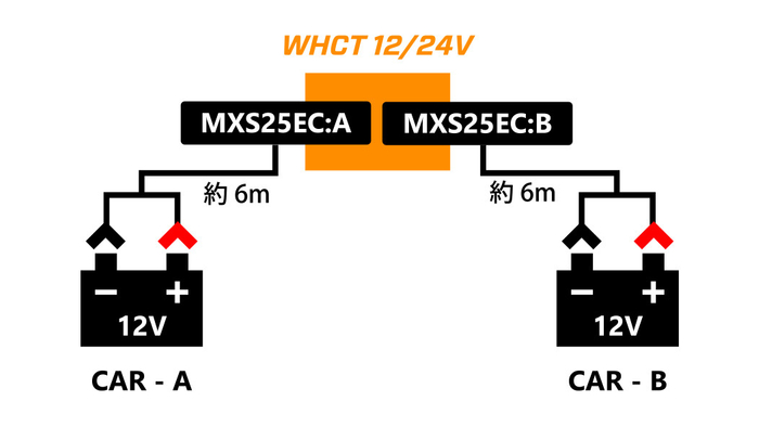 3. 12Vバッテリーは同時に2台充電可能。(ケーブル長は1機6m)
