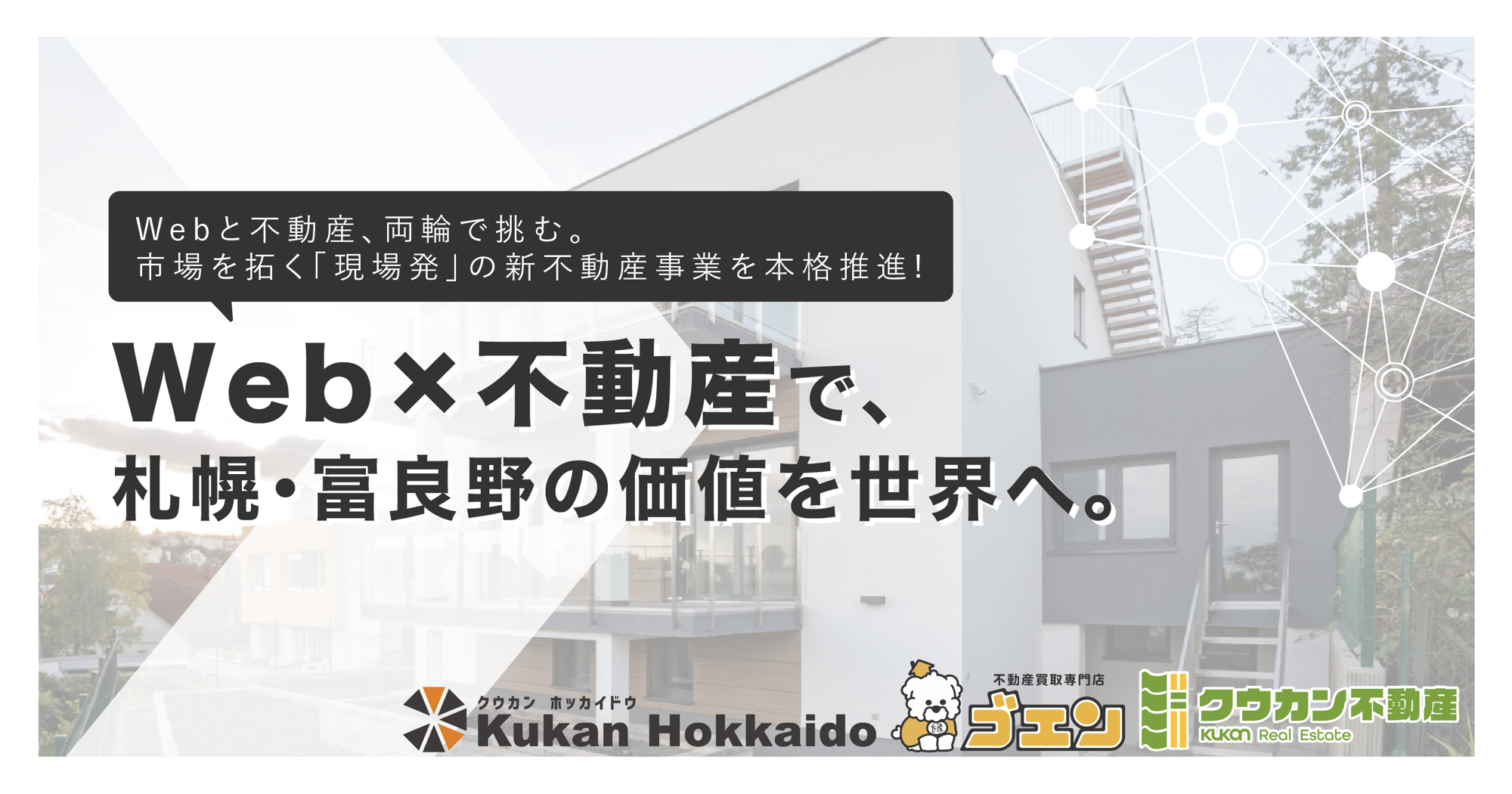 北海道富良野市・札幌市・倶知安町を中心に事業を展開するクウカン株式会社(代表取締役:山本健太郎)は、9月25日よりWeb制作で培った知見と、不動産事業における実践を融合させた、独自のビジネスモデルを本格的に推進してまいります。