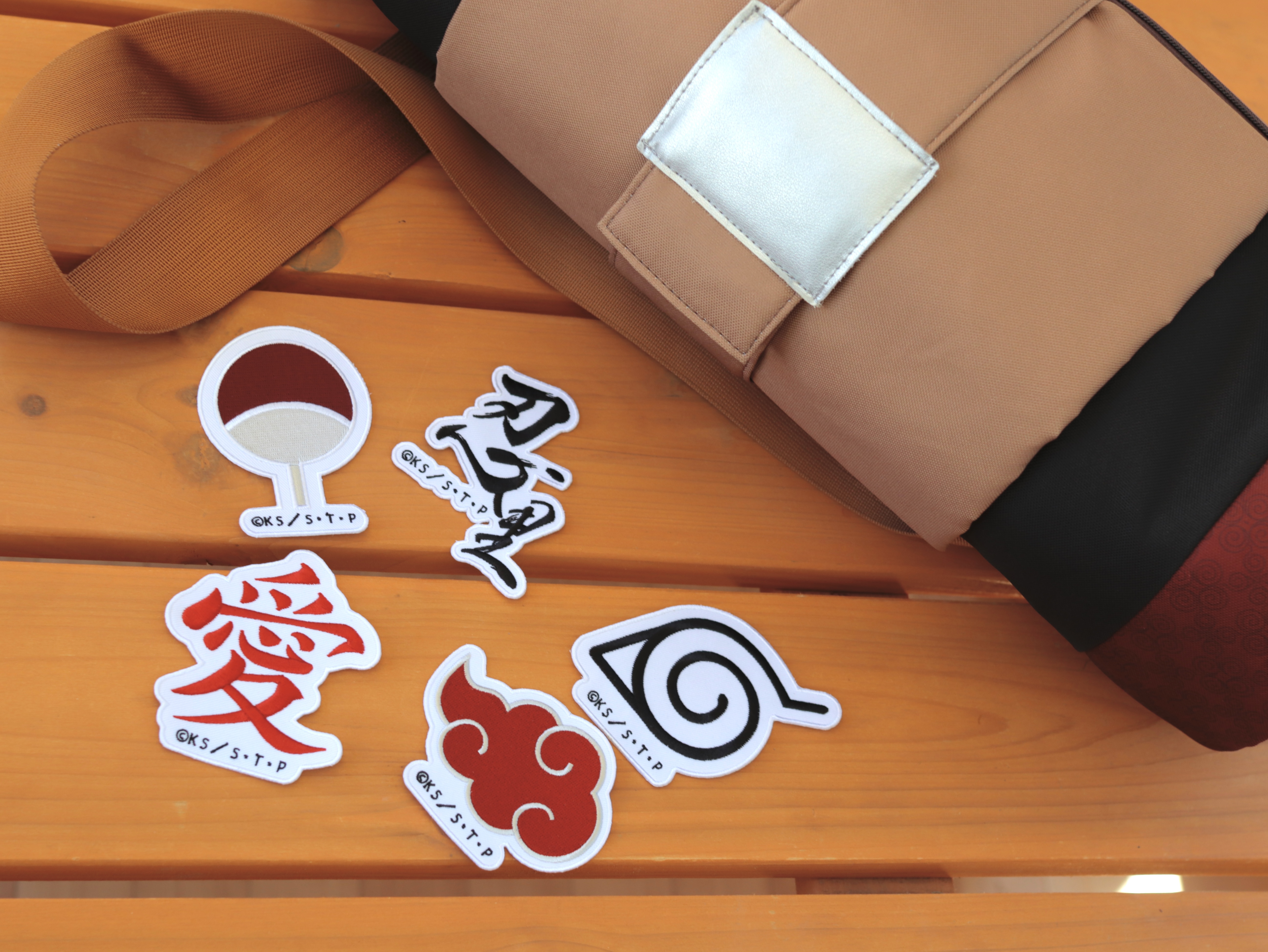 「仙人モード鞄」は、ナルトが仙人モードの時に着用した、巻物をモチーフとしたファン大興奮のオリジナルグッズです。今回販売するオリジナルワッペンは全部で5種類。“木ノ葉隠れの里のマーク”や“うちはの家紋”など、アニメの感動的なストーリーに想いを馳せながら、自分だけの「仙人モード鞄」を作り上げることができます。