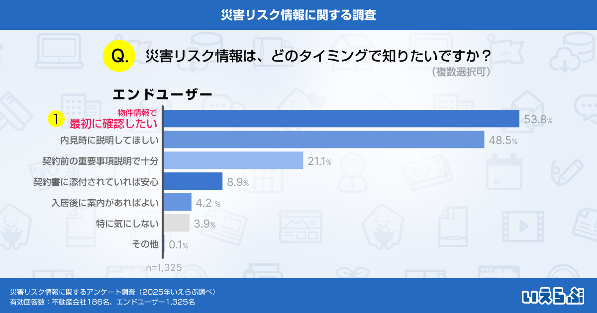 1.エンドユーザーの8割が災害リスク情報を重視、不動産会社の掲載は1割強に