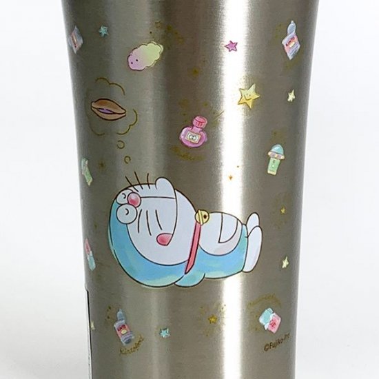 ステンレスの本体に、パステルタッチのドラえもんのデザインがキュート♡周りにはお星さまなどのモチーフが散りばめられていて、キラキラ感がキレイなんです。