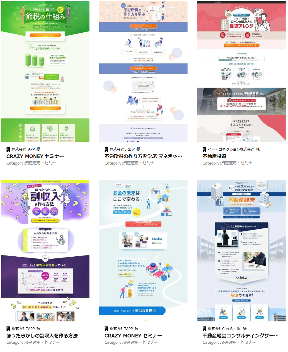 「資産運用・セミナー」分野のPC向けLP制作実績を18件公開|専門性を可視化するランディングページデザインを強化