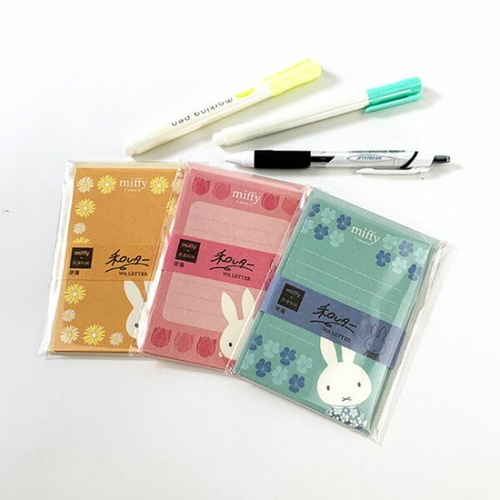 シンプルですが、便箋にミッフィーのおかお、封筒がミッフィーの輪郭になっているのがポイントです!封筒の色と便箋のお花は色ごとに違うので、商品ページから見てみてくださいね。