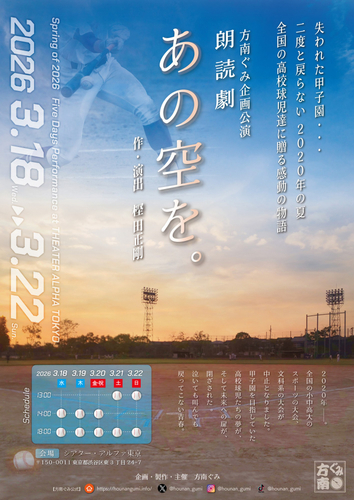 方南ぐみ主催・企画・製作、朗読劇『あの空を。』が2026年3月18日 (水) 〜 2026年3月22日 (日)にシアター・アルファ東京(東京都渋谷区東3-24-7)にて上演されます。