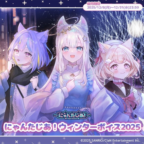 **株式会社ClaN Entertainment(本社:東京都港区、代表取締役社長:大井 基行)は、株式会社サンリオ(本社:東京都品川区、以下サンリオ)と共同で行うVTuberプロジェクト「にゃんたじあ!」において、「にゃんたじあ!クリスマスボイス2025」を2025年12月8日(月)19:00から2025年12月31日(水)23:59までの間、**https://nyantasia.booth.pm/items/7700860**にて販売することをお知らせします。**