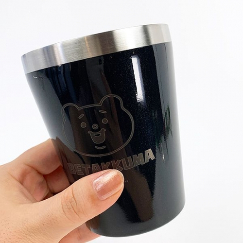ステンレスタンブラー。LINEスタンプから打って変わって、トートもタンブラーもシックな仕上がりになっています。このタンブラーは他のキャラでもおなじみのヒット商品。機能はバッチリです。
