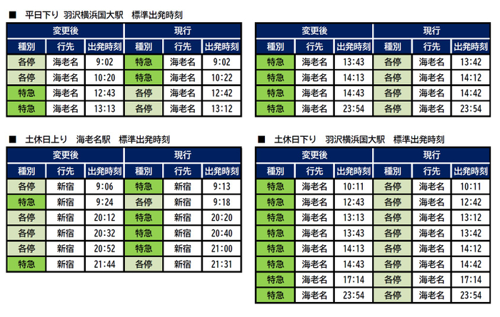 (2)【平日・土休日】日中時間帯(12時30分~16時ごろ)および夜間時間帯(21時30分~23時ごろ)、各停横浜行きと各停湘南台行きの二俣川駅での停車時間を1~2分程度短縮します。
