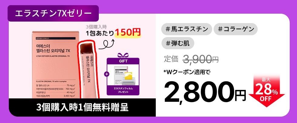 【Qoo10メガ割限定エラスチンオリジナル7X】 ※3個購入時1個無料贈呈