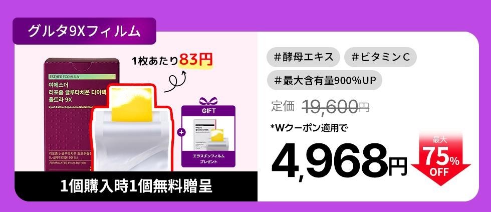 ヨエスターグルタチオンダイレクト9Xは、高純度グルタチオンを主成分とする美白サポートサプリです。リポソーム技術を用いたODF口腔溶解フィルムにより、成分の吸収を高め、メラニン生成を抑制し、肌の明るさとくすみケアをサポートします。今回は、3箱セットに加え、megbabyさんスペシャルコラボ企画として「ヨエスターリポソームGLTダイレクト2箱」「ヨエスター植物性NMNフィトエス2Xフィルム2箱」「ヨエスターエラスチンフィルム2箱」の中から選べるお得なセットをご用意しました。さらに、メガ割期間内購入者全員にエラスチンフィルムを無料プレゼント中と大変豪華な内容となっております。この機会にぜひお試しください!