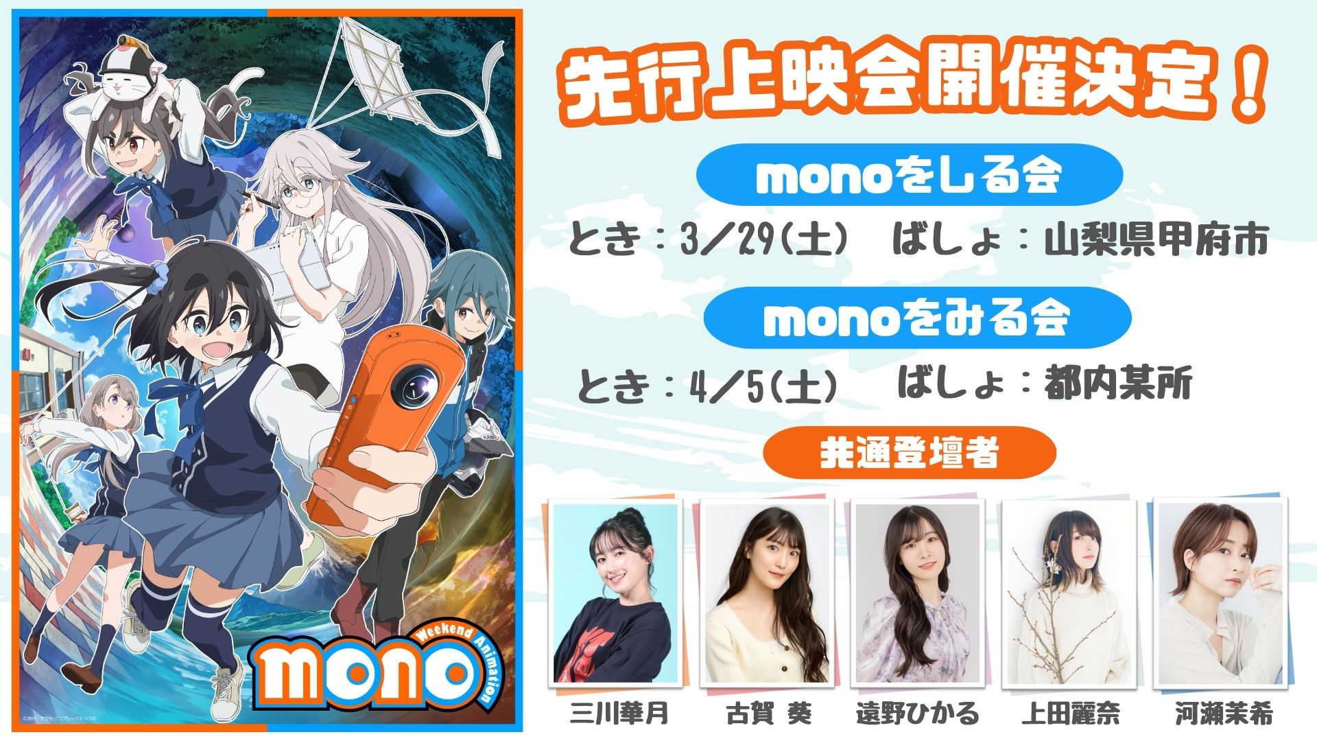 TVアニメ「mono」4月放送開始に先駆けて、放送直前キャスト特番の放送が決定いたしました!