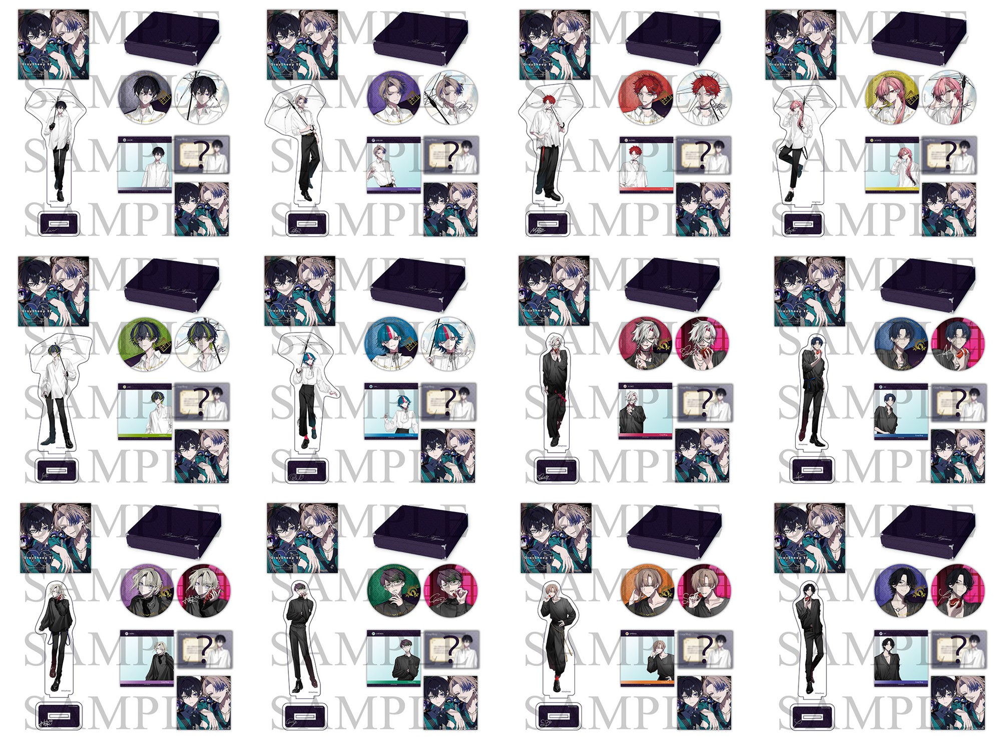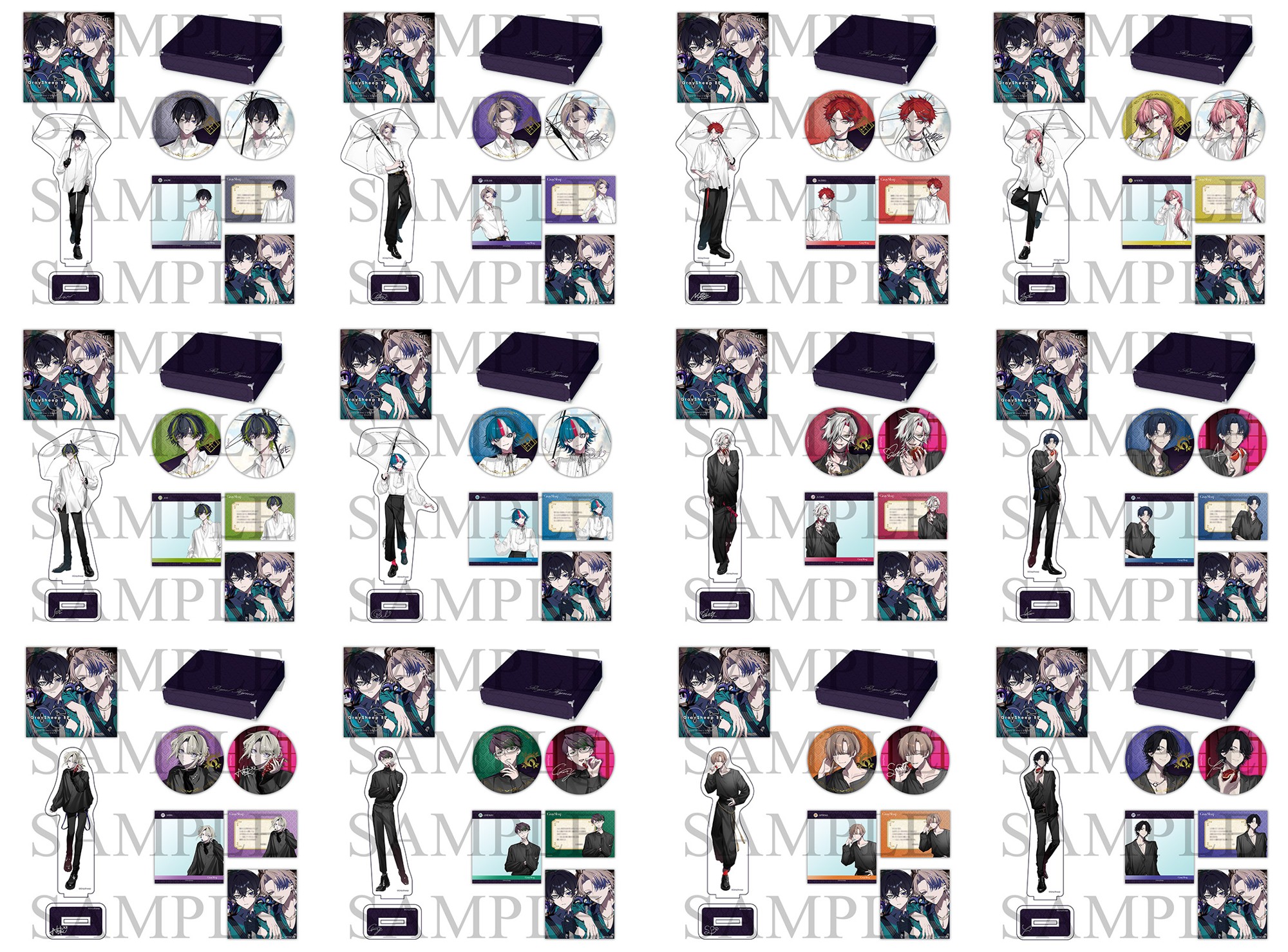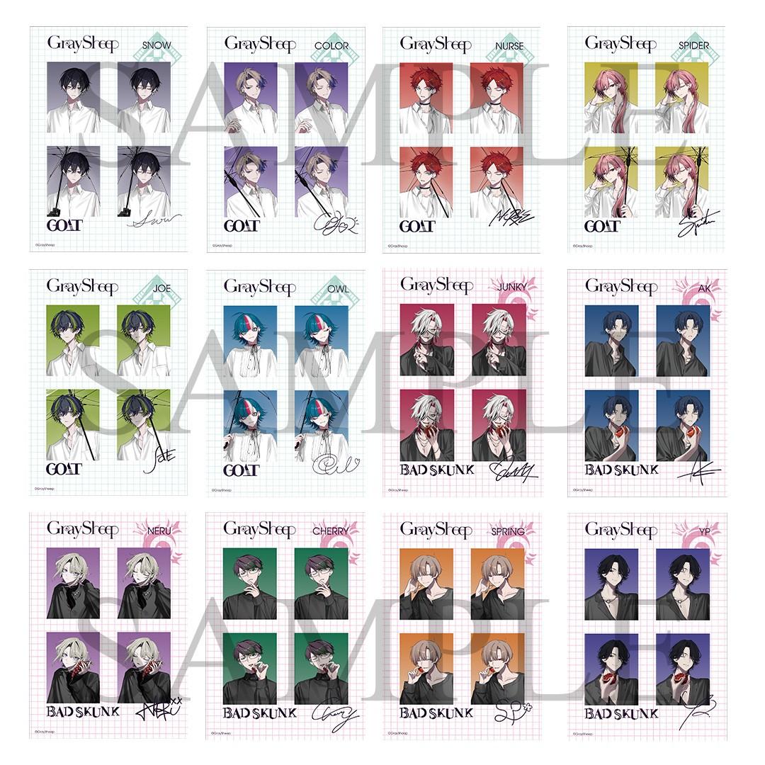 「Gray Sheep EP06」の予約は本日よりスタート。早期予約特典には、証明写真風ブロマイド(全12種より1枚ランダム)、封入特典にはホスト風名刺カード(全12種より1枚ランダム)をご用意。