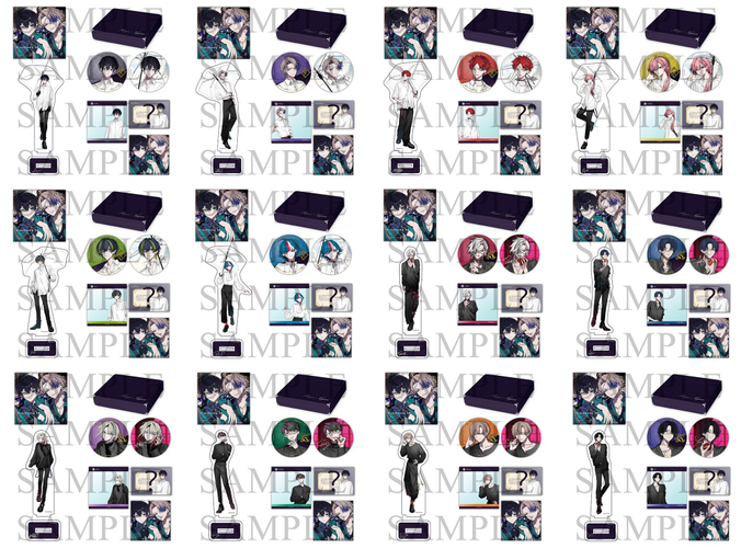 ※缶バッジ、アクリルスタンド、クリアカードは同一キャラとなります。
