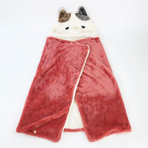 ユズのお顔がフードになっていて、肩に掛けたり腰に巻いたりと使い分けのできるブランケットが登場です。