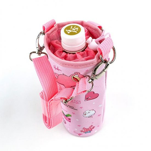 お次は、ペットボトルカバーです。内側はアルミ蒸着なので、保冷や保温もできて便利♪取り外しのできるストラップもついていますよ。